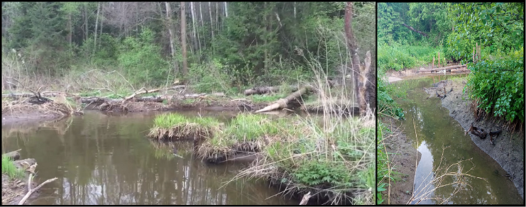 2. Пруд перестал промываться рекой и начал заиливаться. Верхний слой воды стекает в реку, внизу вода стоячая.